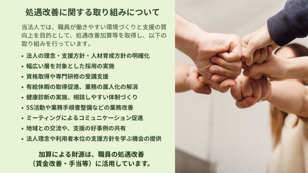 法人概要 Twitter Facebook はてブ Pocket LINE コピー 2026.04.022026.04.04目次理念・職員の役割処遇改善に関する取り組み理念・職員の役割処遇改善に関する取り組み
